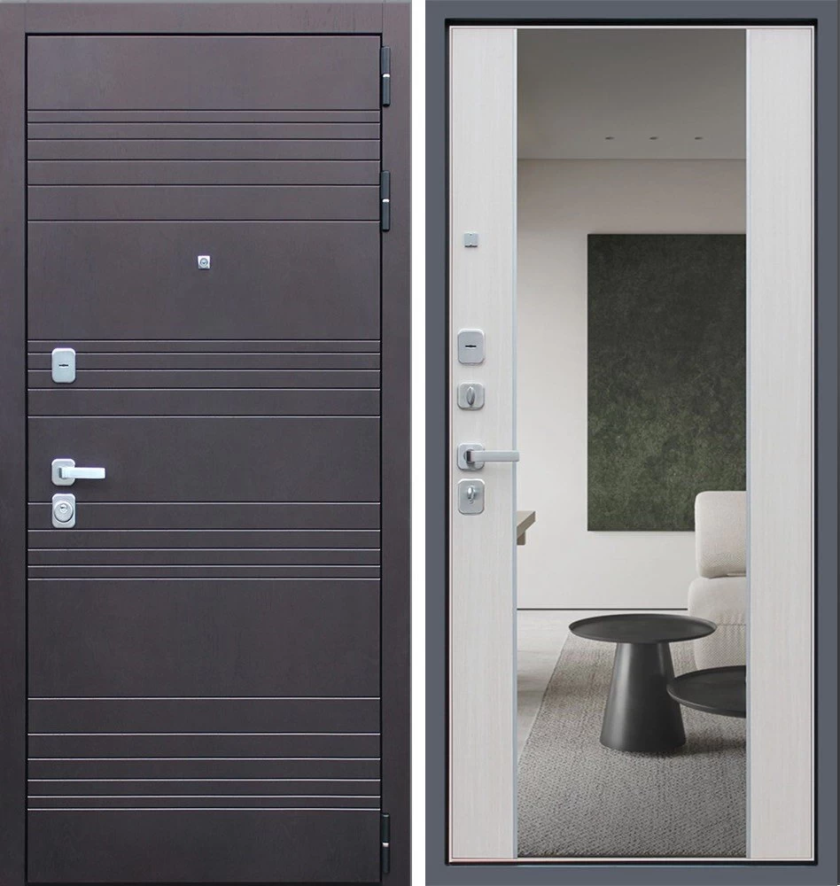 Надежная входная Дверь Дуэт с зеркалом премиум класса по цене 46 853 руб. Большая толщина стали защитит от проникновения в ваш дом, квартиру или коттедж. Используется очень качественная фурнитура: замки, цилиндры, ручки, защелки. Покрытие и отделка двери изготовлено под внимательным контролем производителя. Дверь имеет долгий срок службы и гарантию.